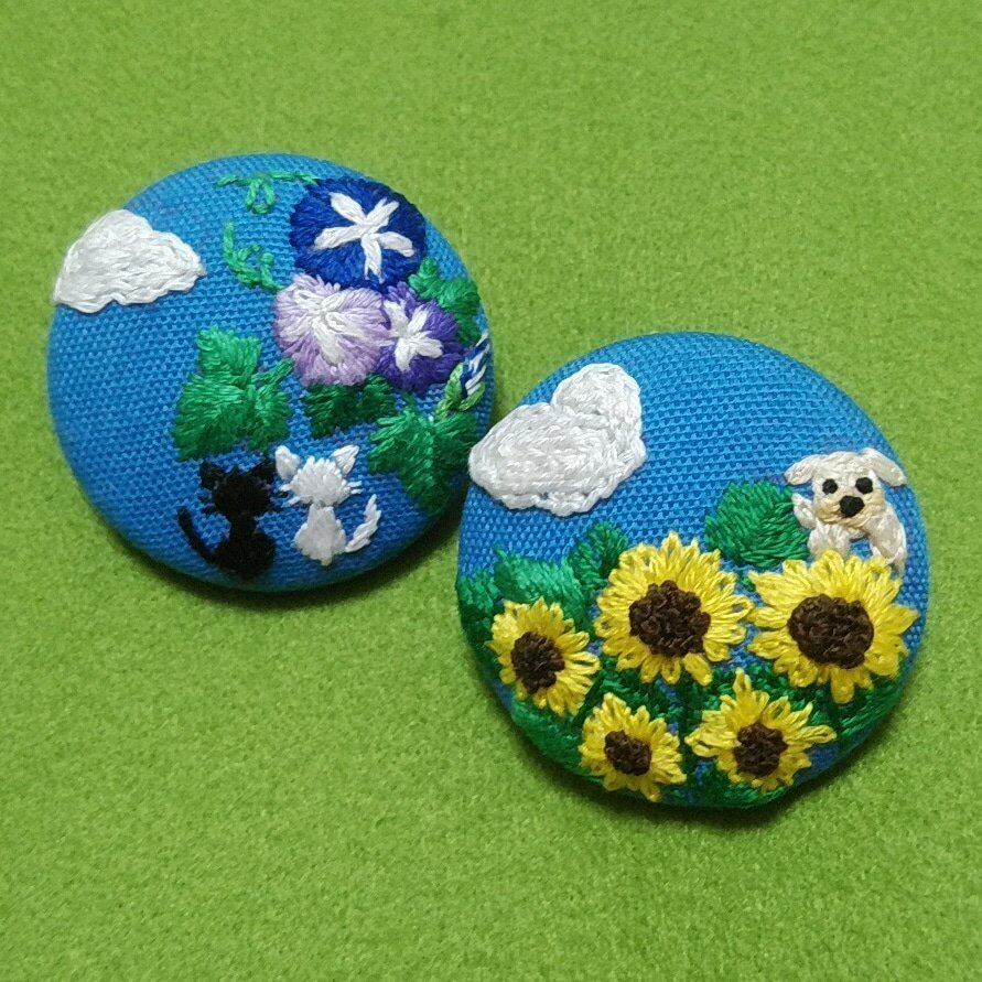 夏の想い出の一場面を、直径4㎝の小さな丸ブローチに詰め込んで