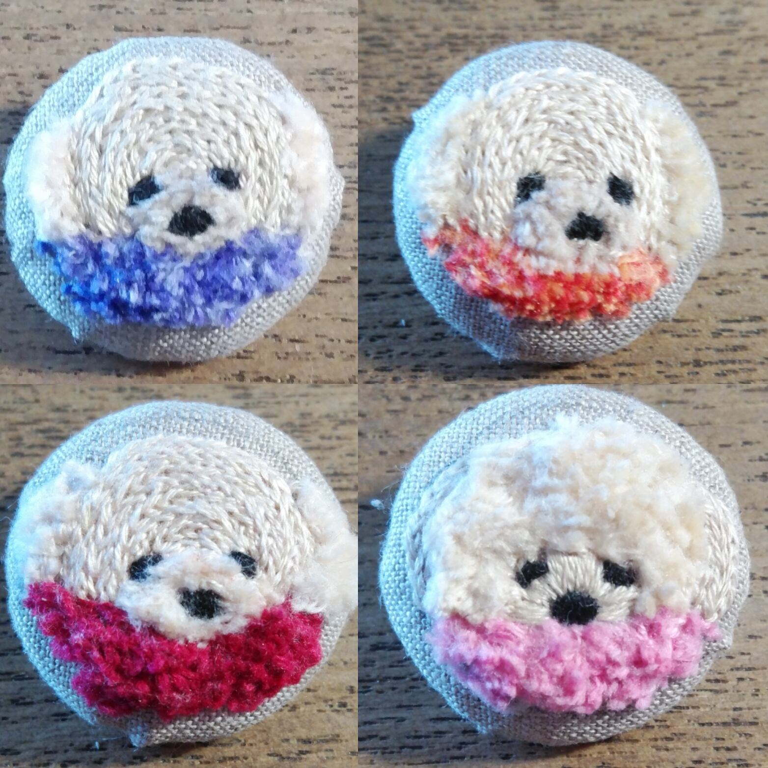 大好きなトイプードルをモデルに手刺繍し、ヘアゴムに仕立てました。